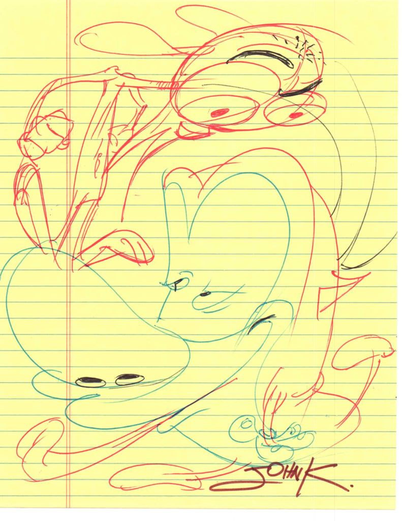 The 9 x 12 " doodles are drawn with marker and the 8.5 x 11" drawings are mostly drawn on lined paper with ball point pens.